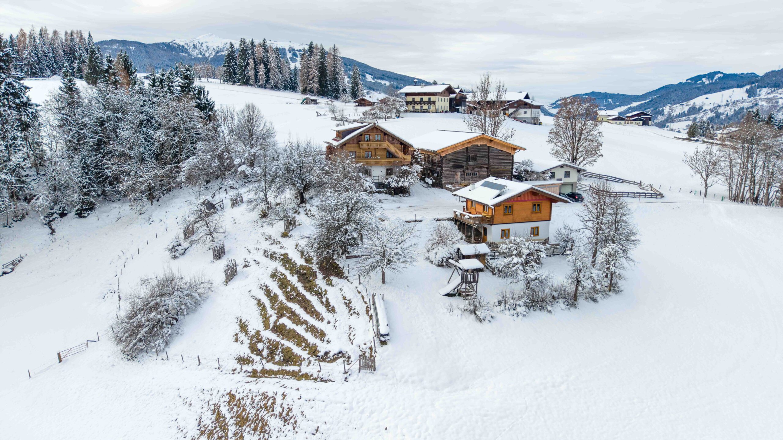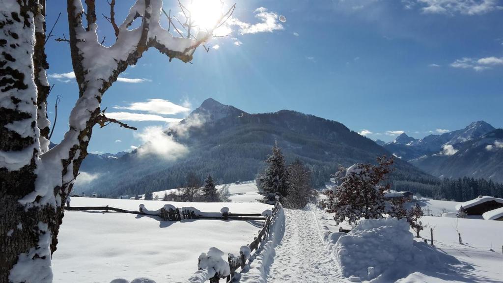 Auch im Winter hat unsere Unterkunft einiges zu bieten. Sie liegt mitten in der Sportwelt Amade. Nur 200 Meter entfernt vom Hof befindet sich eine Skibushaltestelle, von wo aus Sie der gratis Skibus direkt nach Flachau zur Talstation Space Jet 1 bringt. Auch für Nicht- Skifahrer bietet unserer Region einiges, wie Rodelbahnen, Langlaufloipen, Schneeschuhwanderungen, Winterwanderwege oder ein entspannter Tag in der 3km entfernten Therme Amade.